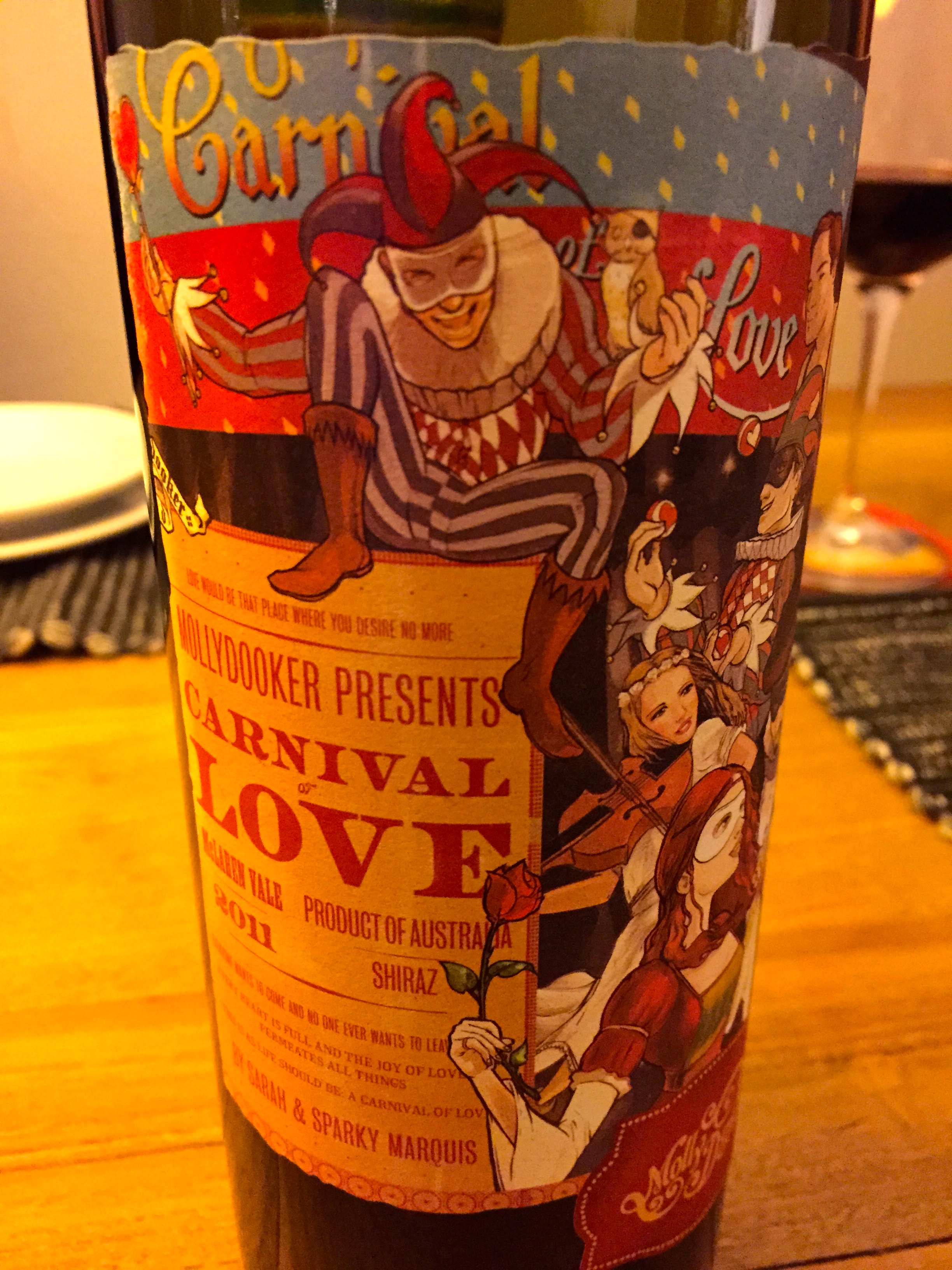 Even though the lamb was accompanied with a beautiful 2008 Chianti Classico Riserva from Antinori, the undeniable star of the evening was this 2011 Carnival of Love Shiraz by Mollydooker (McLaren Vale, Australia).