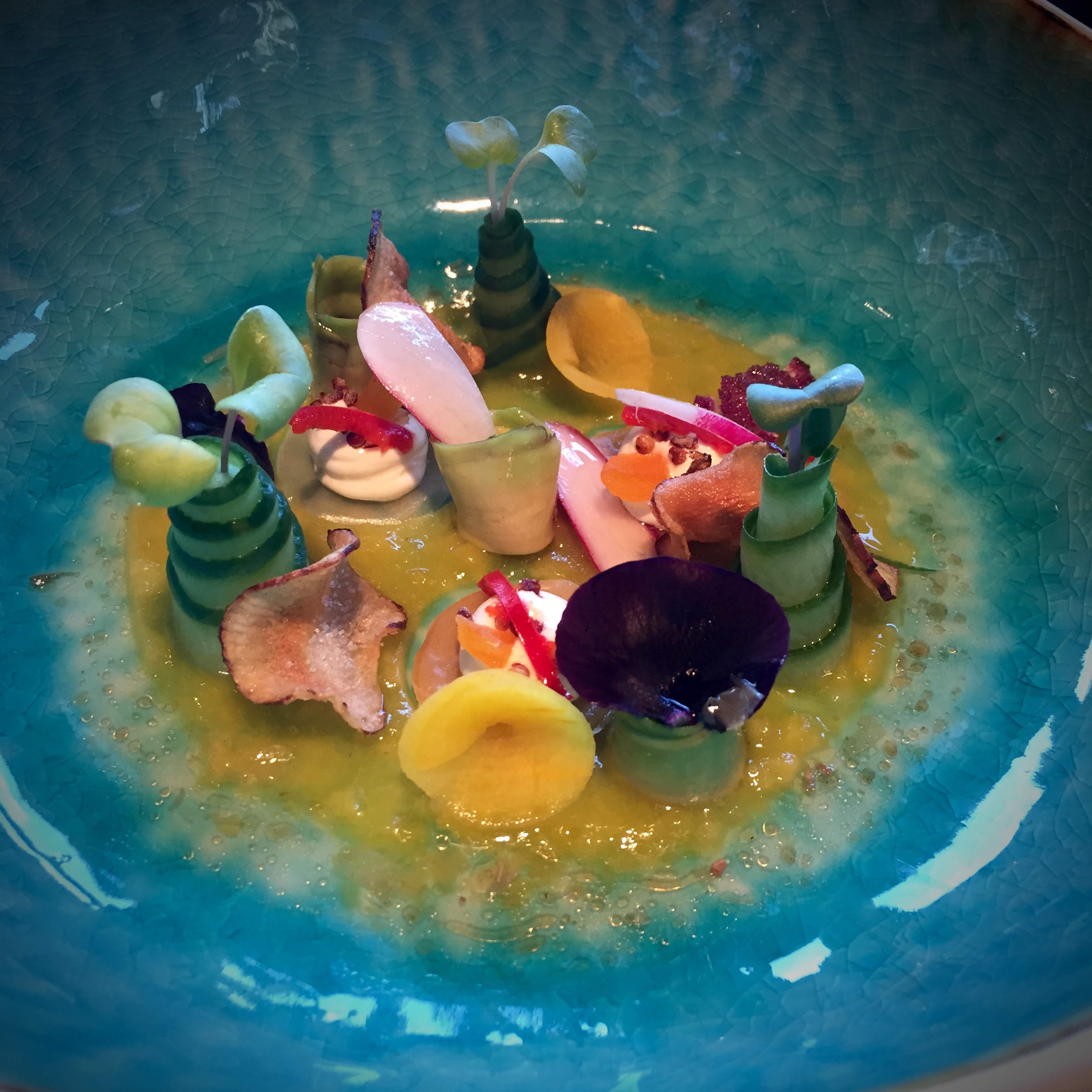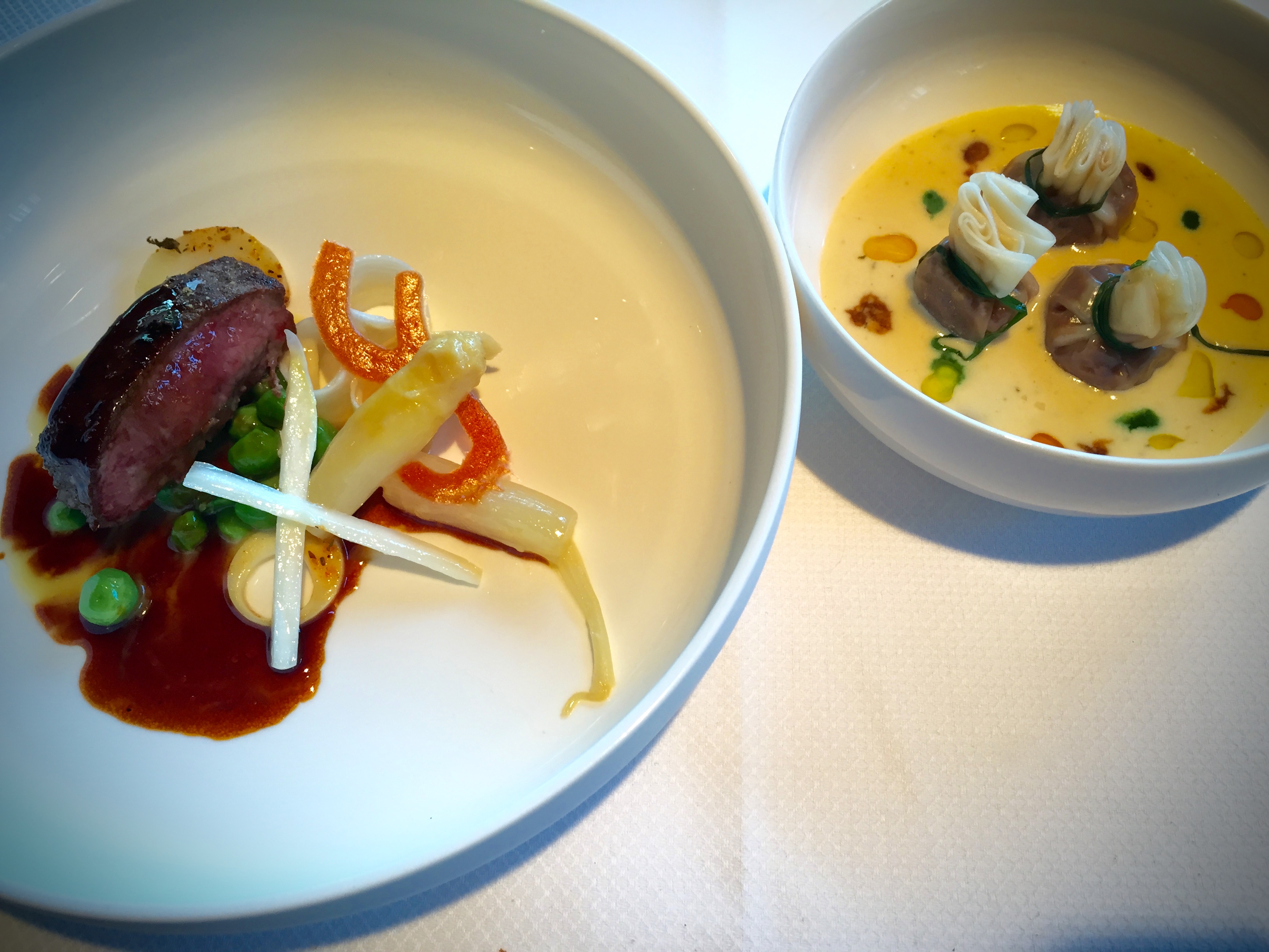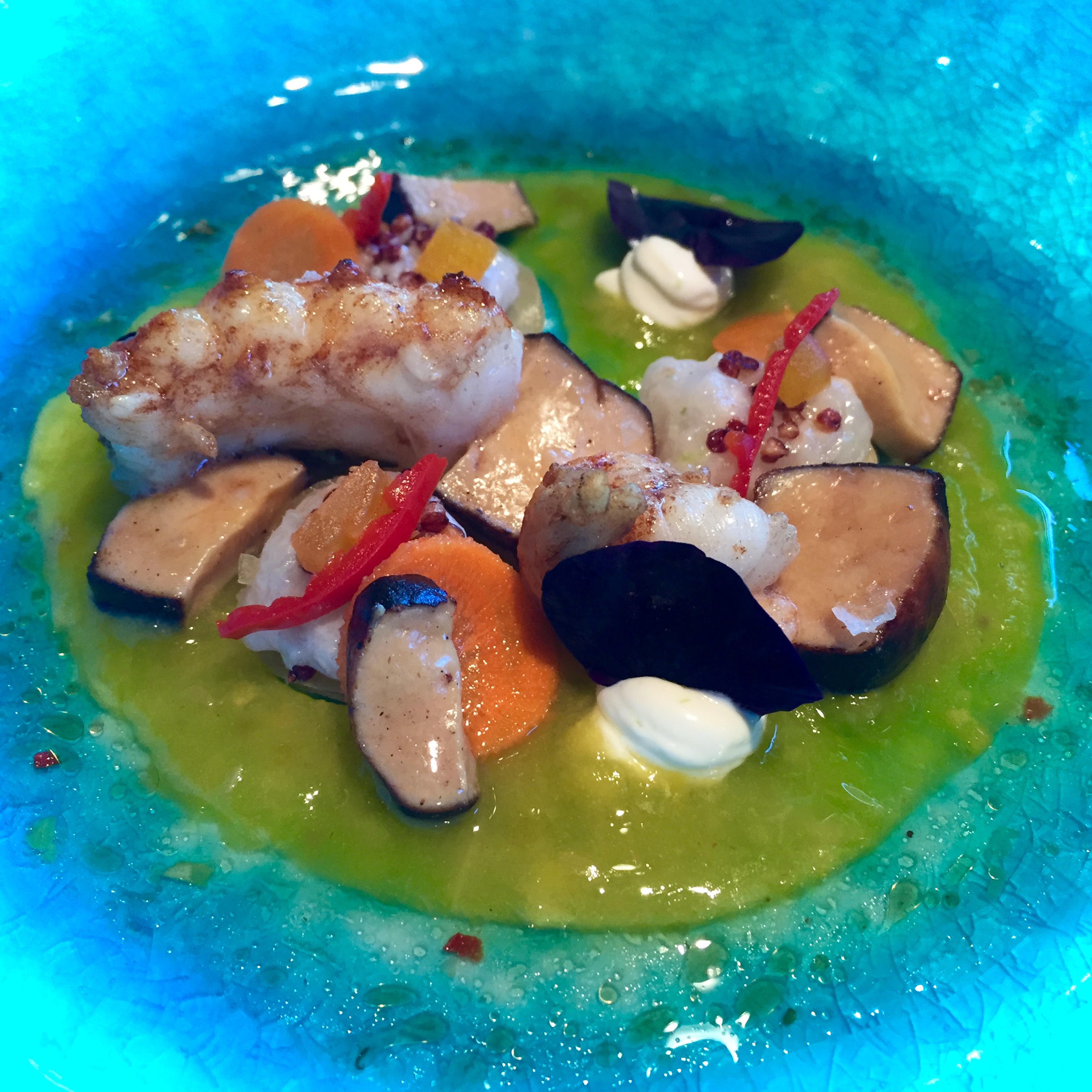The plate on the left was good (really good actually) but the bowl of lamb dumplings was fantastic and the sauce (which to me resembled a light mornay sauce, a slightly cheesy béchamel, but I may wrong here) with drops of different infused oils was even better. I didn’t even feel the slightest bit bothered with decorum when using the bread to mop up the leftover sauce…