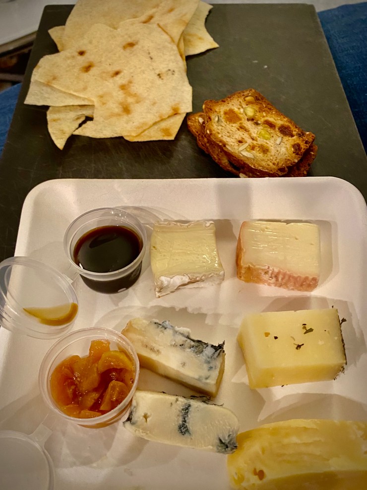 The food box does contain a lot of plastic containers, but at least most of them are recyclable. Besides the menu card, there is a leaflet with QR codes linking to Youtube videos on the food preparation as well as explanations on the cheeses and wines. There is also a link to the website for the allergens of that week’s menu.