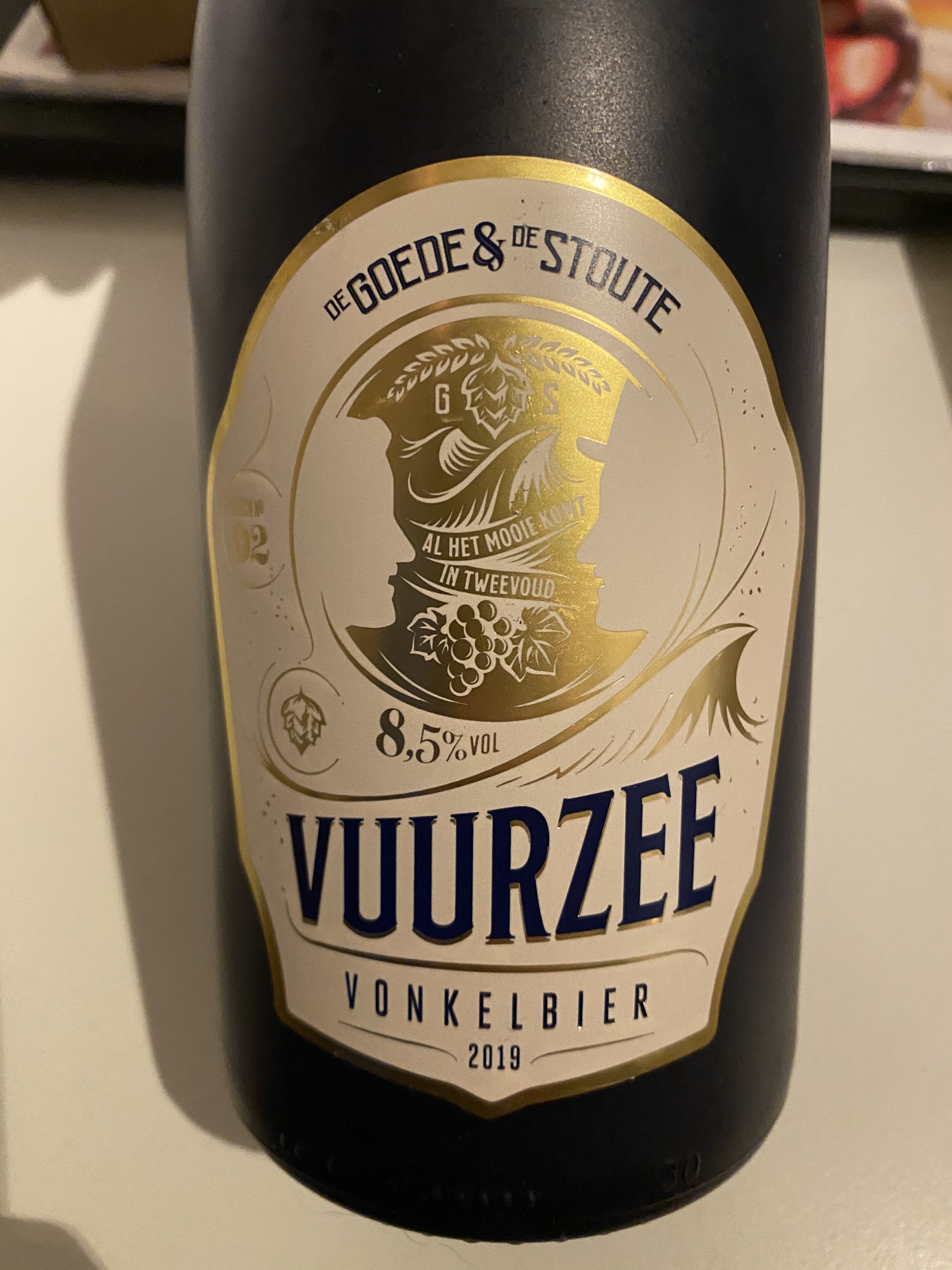 I also ordered the Vuurzee Vonkelbier pairing, a large bottle of multi-award winning gastronomical beer (€19,50) by Dutch brewery De Goede & De Stoute. Made with Champagne yeast and Hungarian Pinot Noir grapes, it turned out to be a very refined, hoppy, yet fruity appetizer. I can highly recommend it, so do pick up a bottle if you ever come across it.
