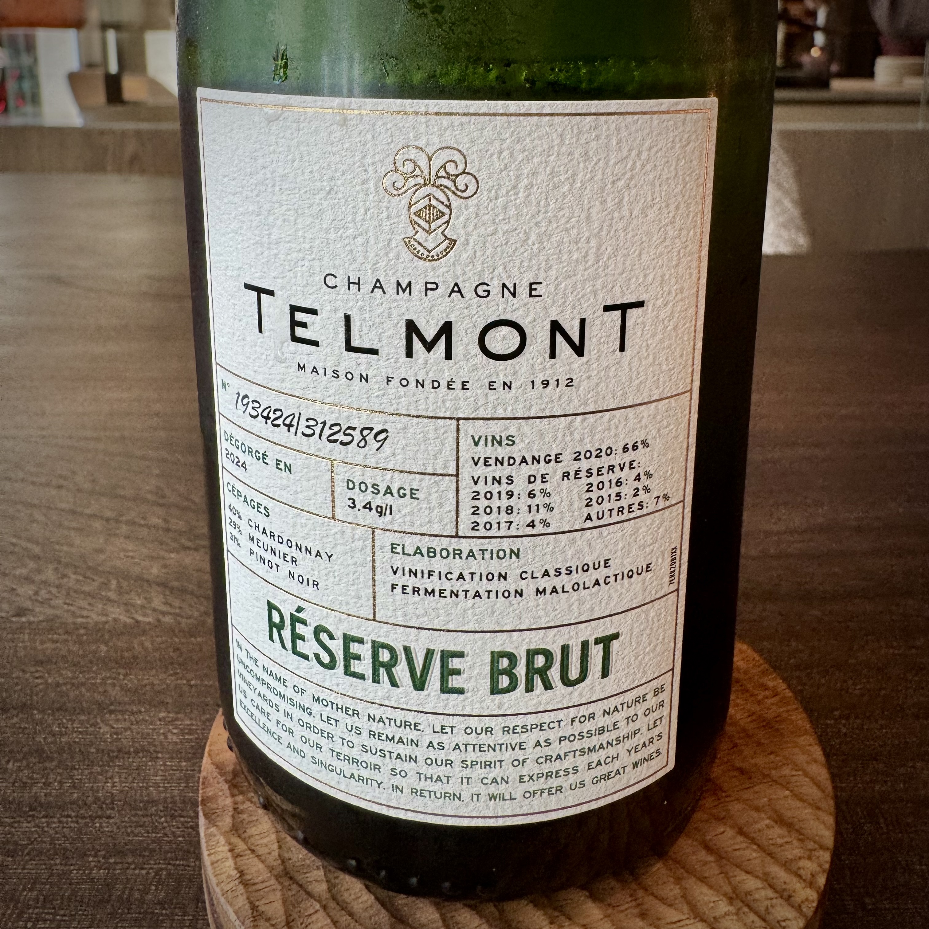 As aperitifs, there were four signature offerings. Chantal chose Réserve Brut Champagne by Telmont (€28) over the other champagne option, the Grande Cuvée 172ème édition by Krug (€69). Flore is a brand ambassador for Krug.
