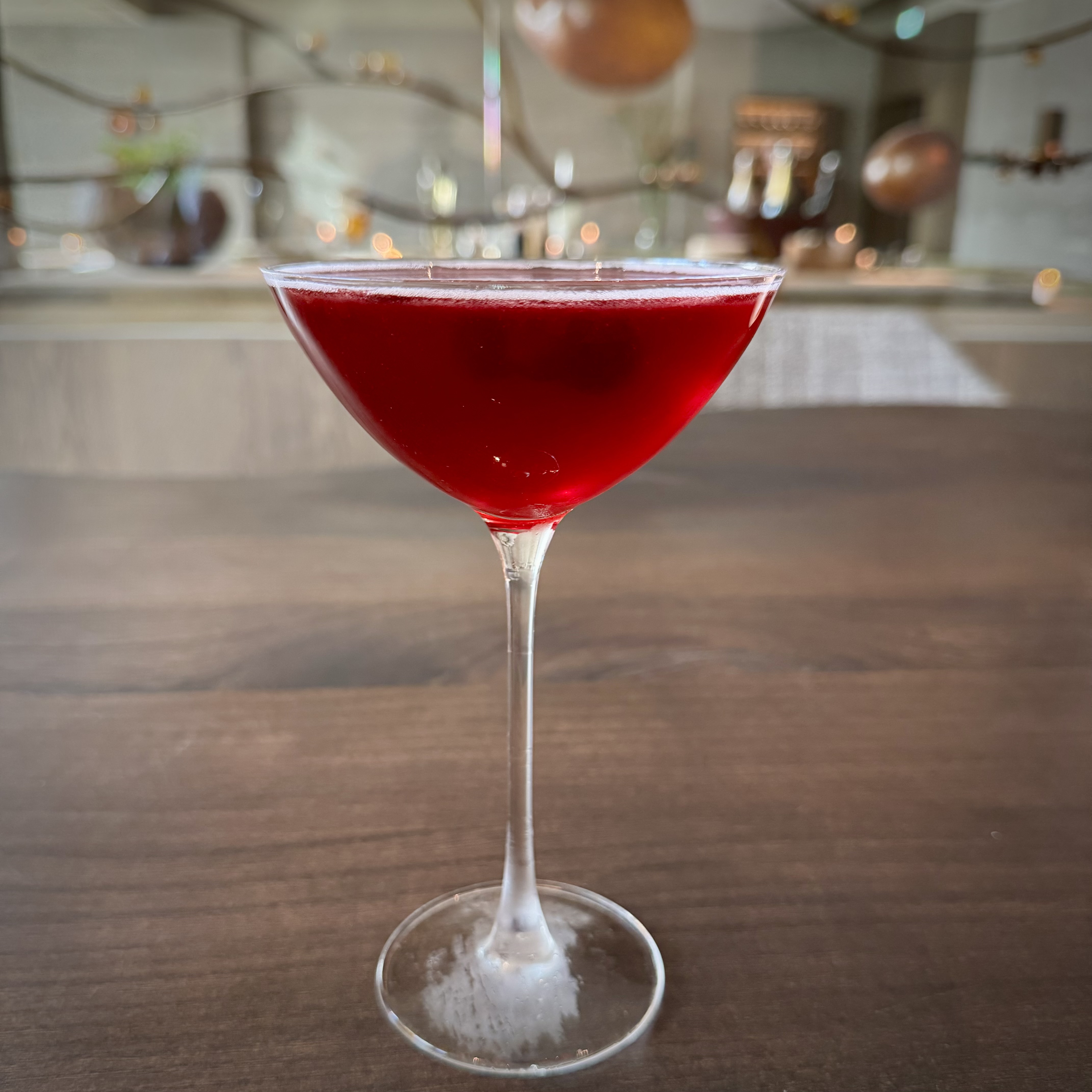 Flore’s beer collaboration with Brouwerij Nevel from Nijmegen sounded very interesting (€10) with flavours like geranium, rose, coffee, and Sichuan pepper. However, sour beers are not my favourite style, so I opted for the cocktail: a tequila and mezcal mix with berry syrup, topped with gooseberry juice (€25).
