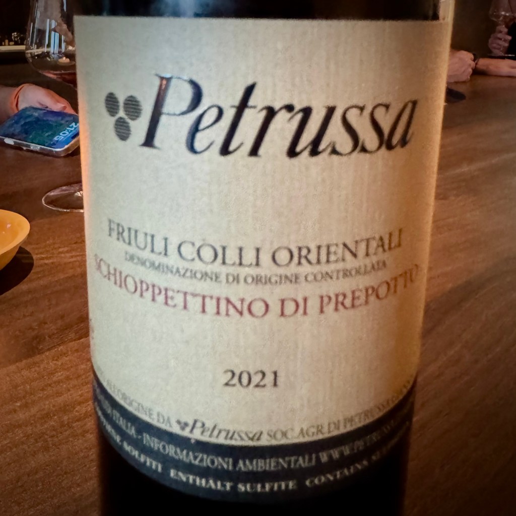 As I had never heard of the Schioppettino grape varietal, I opted for a glass of the 2021 Vigna Petrussa from the Italian Friuli Colli Orientali DOC region, which borders Slovenia (€20). It nicely combined the light structure and fruitiness of a Pinot Noir with the peppery tones of Syrah.